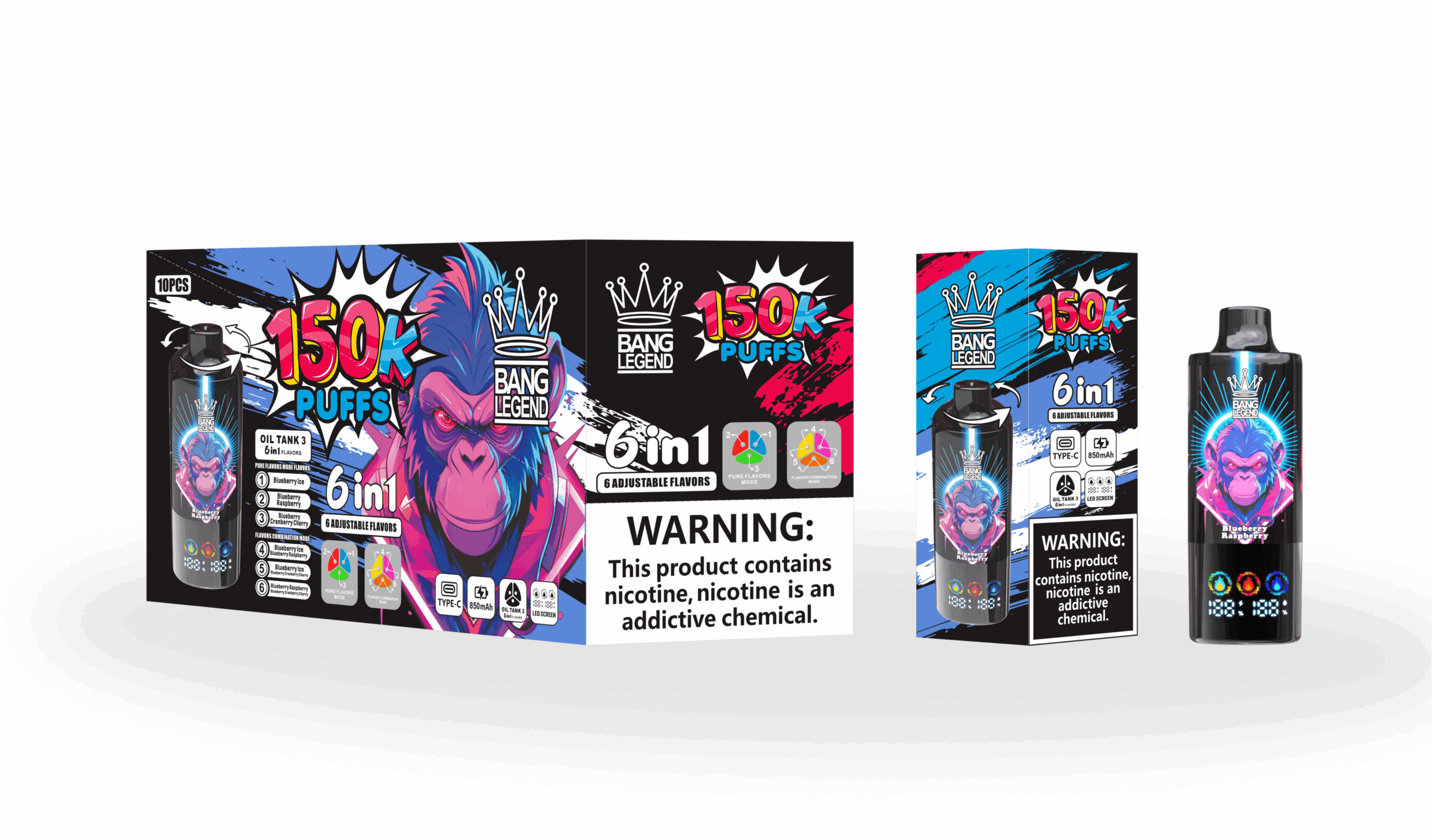Bang Legend 150k Blueberry Ice/Blueberry Raspberry/Blueberry Cranberry Cherry Einweg-Vape
