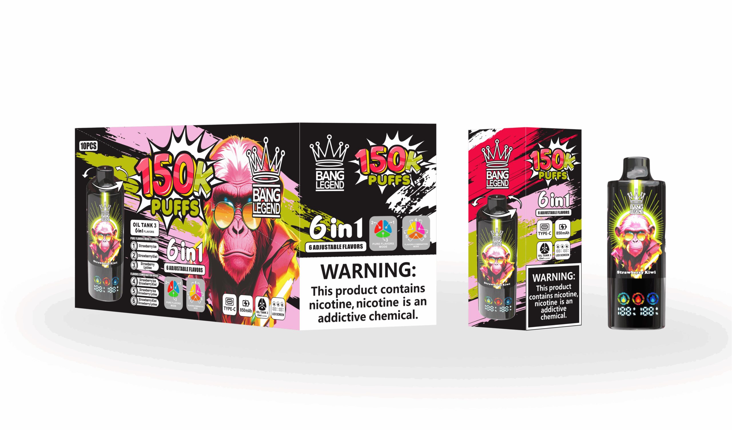 Bang Legend 150k Strawberry Ice/Strawberry Kiwi/Strawberry Lychee Einweg-Vape