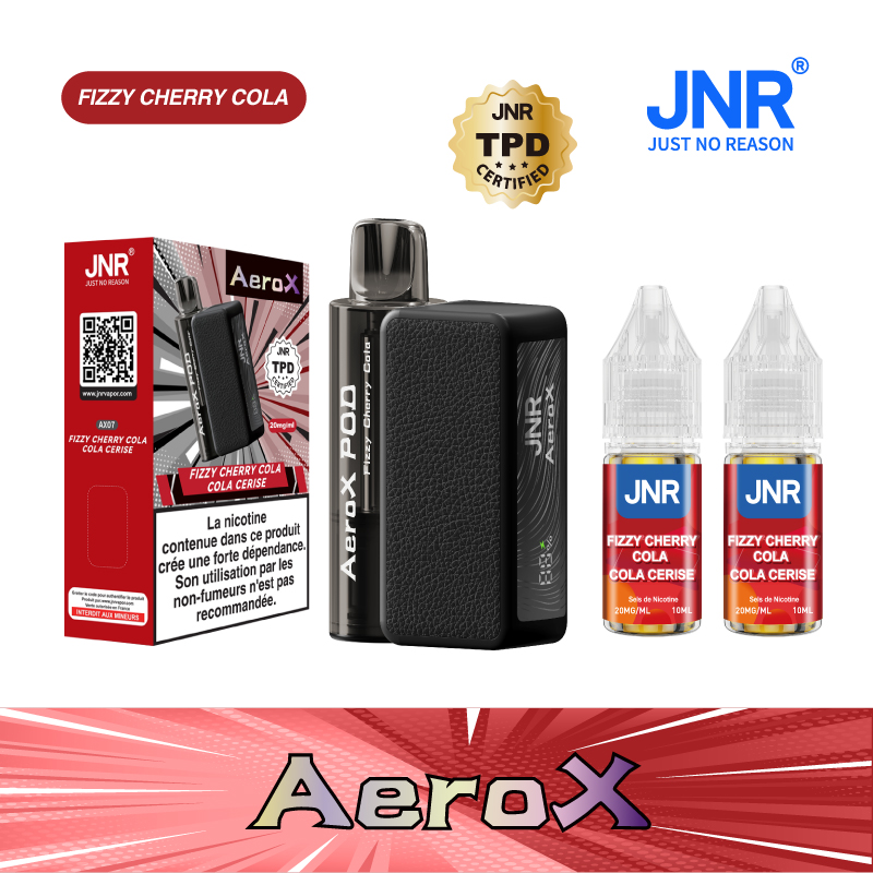 Die JNR Aero X 32000 Fizzy Cherry Cola bringt den klassischen Geschmack von Kirsch-Cola mit prickelndem Effekt und bietet bis zu 32.000 Züge aus ihrem nachfüllbaren Pod-System mit zwei Refill-Kartuschen. Die integrierte 1,1Ω Dual-Mesh-Coil sorgt für authentische Geschmackswiedergabe und reichhaltige Dampfproduktion, während der 850-mAh-Akku mit Type-C-Schnellladefunktion für dauerhafte Power sorgt. Magnetischer Pod-Mechanismus für unkomplizierten Wechsel, durchsichtiges Sichtfenster zur Überwachung des Liquidstands und regulierbare Luftzufuhr von MTL bis RDL. TPD-zertifiziert nach höchsten Standards.
